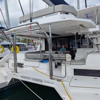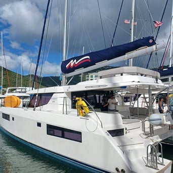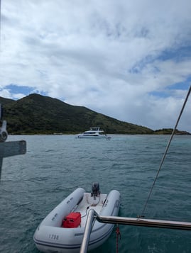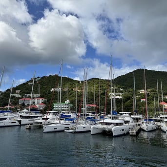 Next morning was our check in to the Moorings to get our boat, which was a pretty easy process. We got it a little ahead of schedule, name was Nomada Caribena. I think I pronounced it wrong every time. We divided and conquered, N8 and I did the boat check and briefing, and the others went to the grocery store for some provisioning. Also, this was the first time that we did the provisioning list by ourselves, hopeful that we didn't forget anything important. One fun aspect of grocery shopping in the islands is there is a good chance they don't have something that we are used to in the States, so it can be a gamble when making the list. Not too much issue with that this time, and Cathy and Jennifer were pretty good with improvising and figuring out substitutes. Big shout out the them! However, we did not put exact numbers of what to get for the alcohol and mixers, as we weren't sure what everyone would want. So we ended up with quite the amount of booze, and interesting amounts of things.... We had 6 margarita mixers, but only 1 bottle of tequila. We had 1 bottle of gin and a few cases of tonic. I think we had enough bloody mary mix to outfit a brunch restaurant in downtown Chicago, and I have never seen so much sprite. Also, the ratio of vodka to any other liquor made it seem like this was a Russian vacation, rather than a Caribbean one. Also, there was a lot of wine....like....a lot. Needless to say, we had enough to drink for probably a month, so we did our best to get through as much as possible. But I think the dock workers really enjoyed our leftovers when we got back.