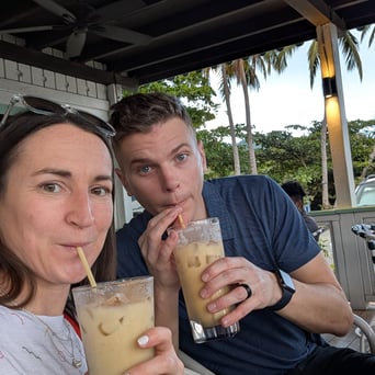 We decided to be frugal and stubborn getting from the ferry to our hotel, so we walked about 0.5 - 1 mile with our backpacks, duffels, and one wheelie bag. Sidewalk was a bit crappy, and we ended up pretty sweaty, but we saw some chickens and iguanas! Checked into our hotel, got a rum punch, then headed to Pussers to get ourselves a Painkiller, which is one of our favorite drinks, and quite the symbol of us being in the BVI!