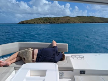 The boat was in pretty good shape. We opted for one that was a little older, since it's cheaper. A few minor things needing attention before we set off. During the trip, it seems that our water maker filters got clogged, so we fixed that. First tried troubleshooting by cleaning out the strainer, but that didn't work, and we had to find and replace the filters. These are located under one of the beds, so I crawled in there to do it. The hand-tight filters seems to have been tightened with a gorilla hand, so in efforts to loosen it, I bashed and cut my finger, so that sucked. Also, those little spaces get reallllly warm, so I was quite sweaty. Also, we were going to the beach that morning, so I was already in my swimsuit, which just adds to the weirdness of this situation, haha. N8 helped to get the filter off, with a lot of cursing, some towels, and some strained muscles. Replaced them, got excited that it would work.....and then it didn't. We were about to go snorkel under the boat to see if the hole was plugged from the outside, but luckily Nathan remembered that he had valved off the inlet when we were troubleshooting the strainer. Turned the valve, and voila! It worked! Thank goodness we didn't have to "rough it" by conserving water, haha.